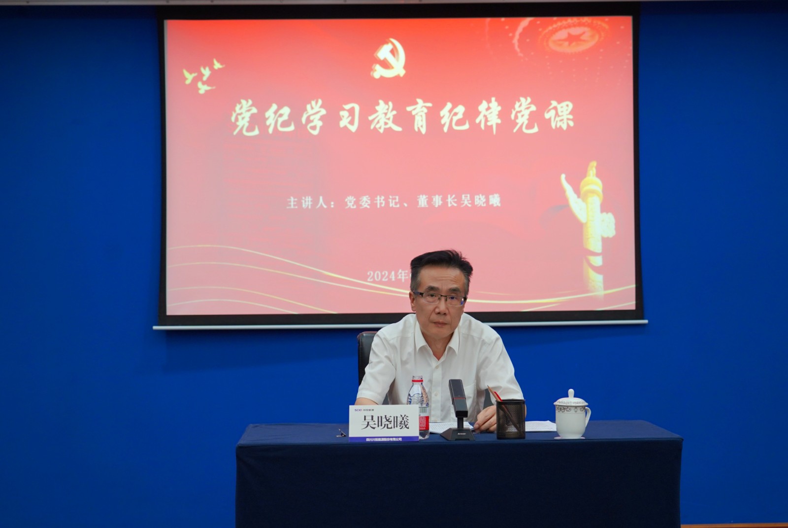 6月25日,AG真人官方网集团党委书记、董事长吴晓曦赴AG真人官方网能源教学党纪学习教育纪律党课并宣讲省委十二届五次全会精神。省国资委宣传事情随处长(党委宣传部部长)李鑫、人事处相关同志到会指导。AG真人官方网能源党委书记、副董事长、总司理杨洪主持聚会。